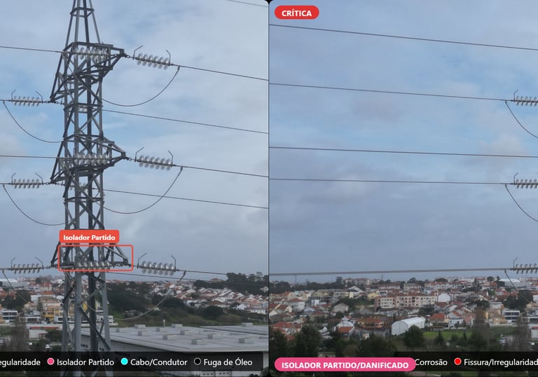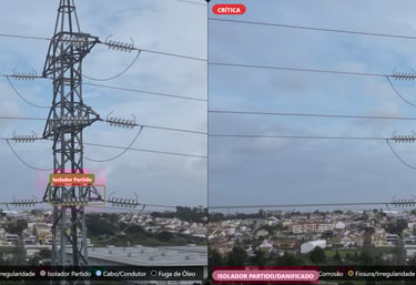 Deteção precoce de arcos elétricos, pontos de sobreaquecimento e fadiga estrutural, prevenindo apagões e incêndios florestais.