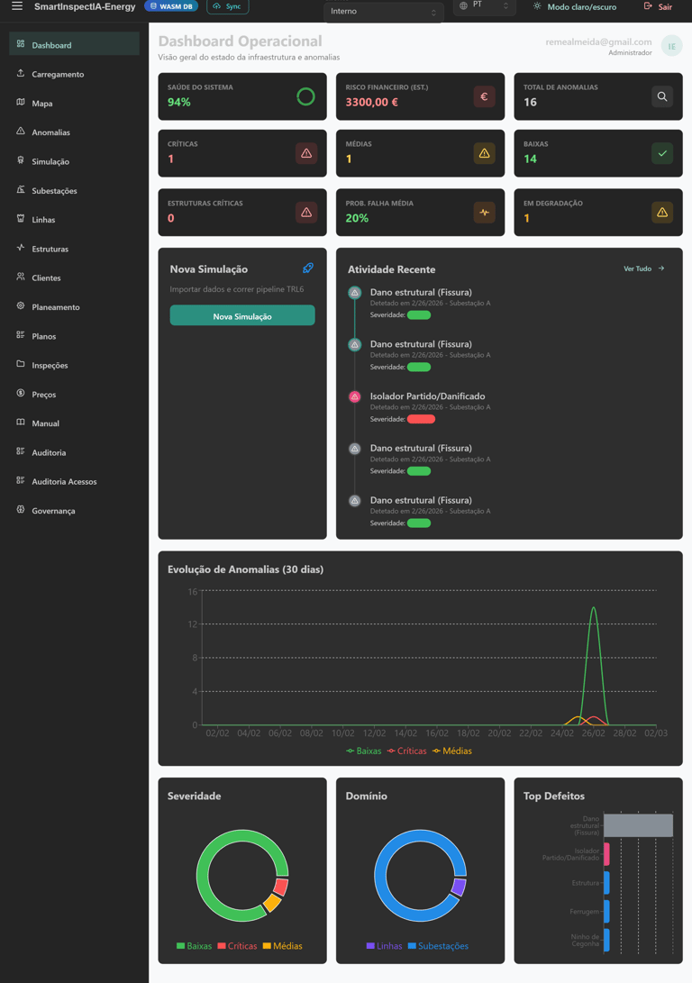Arquitetura Local-First que garante a soberania dos dados. Os diagnósticos de infraestruturas críticas são processados e encriptados localmente, cumprindo as normas europeias de proteção de dados sensíveis.