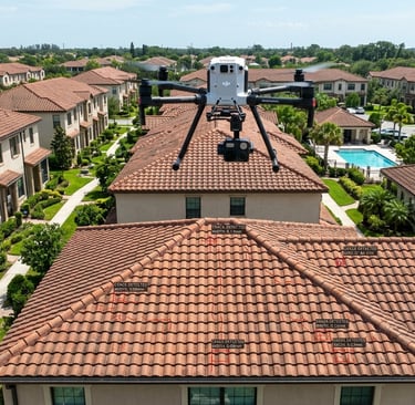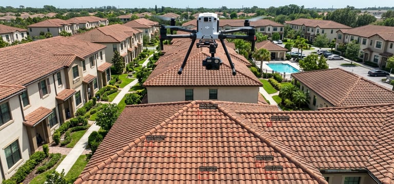 Imagens 4K georreferenciadas que permitem identificar infiltrações, telhas partidas e acumulação de resíduos com precisão milimétrica